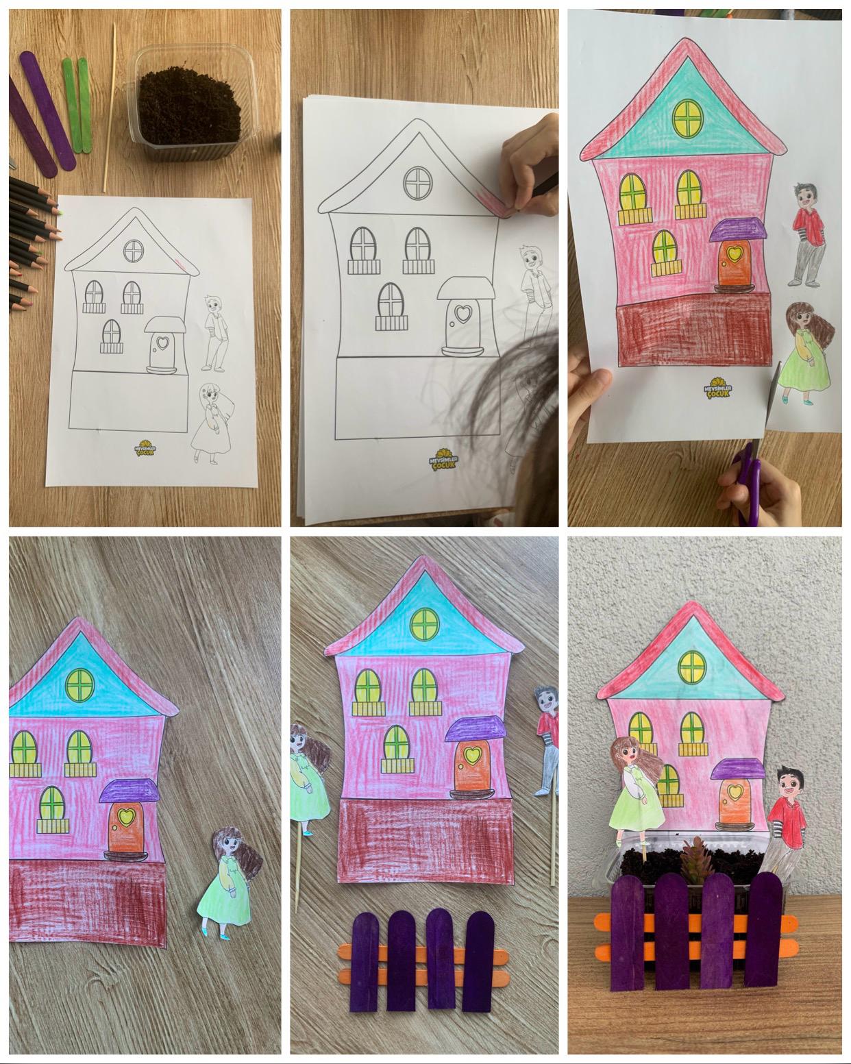 - A4 çıktısı (üzerinde boyanacak bir ev ve karakterler olacak)
